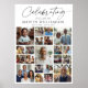 Create a memorial remembrance tribute photo display for a Celebration of Life event or funeral memorial service utilizing this easy-to-upload photo collage template with 21 square pictures with the title CELEBRATING THE LIFE OF NAME for your loved one. The design features elegant script swash typography in your choice of colors, shown in black and white. OPTIONS: The sample is shown in a 22x30" size on Value Paper (Matte)--other sizes and paper quality or canvas, Digital Download file for local printing or to transfer the design to another product like a foam board, banner, tapestry, etc. are available on the ordering page. RESIZING TIP: Use the CHOOSE YOUR SIZE section below "Standard Sizes" if uneven borders occur and click the UNLOCK icon first (looks like a chain link) before entering the new width and height dimensions. Adjust the new dimensions proportionally by adding or subtracting approximately the same number of inches on both from the original size (you may have to adjust incrementally to achieve equal outside borders).