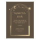 O Bar Celestial Mocha Dourado Mimosa Sun Moon Stars Astronomy Cósmic Cósmic Galaxy Event Poster apresenta um sol dourado, lua e estrelas em um fundo mocha. Dentro é o seu texto personalizado. Projetado por ©2024 Evco Studio www.zazzle.com/store/evcostudio