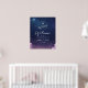 Bem-vindos aos seus convidados a uma noite de magia e romance com este sinal de boas-vindas ao casamento celestial. Apresentando um profundo marinho e violeta céu estrelado, nuvens macios, e um delicado monograma de ave-amor no topo, esta design estabelece um tom de sonho para sua celebração. Perfeito para casamentos espetaculares, cósmicos ou românticos, este cartaz delineia lindamente seus nomes e data de casamento. Personalize facilmente o texto para criar uma impressionante primeira impressão para seu dia especial sob as estrelas.