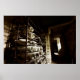 Esta cena retrata, em tons de sépia, uma adega abandonada de um castelo francês. A sala debaixo de um grande prédio é um volume contido de garrafas poeirentas de vinho vintage que parece inusitado por muitos anos.