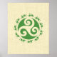 Símbolo celta verde moderno / triskele e borda circular festiva de shamrocks sobre um fundo leve que falso.