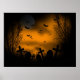 Póster Cemitério de Halloween com Morcegos e Pedras Tomba
