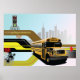 Um design da cidade de ônibus escolar com a cidade ao fundo. Esta design parece realmente eficaz nestes Poster