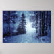 Poster Cena de inverno da Floresta Mágica Azul Lua