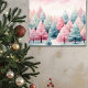 Uma cena de inverno com uma linda floresta de abetos, com hortelã e cor-de-água rosa!
