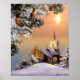 Esta trabalho de arte tem um sentimento de paz e tranquilidade. As luzes convidativas nas janelas da igreja dizem: "Entre. Como o prédio representa um santuário para pessoas, a árvore com seus ramos de cheio para os pequenos robins contra o frio do inverno também. Esta pintura, pintada em cores análogas, se encaixa na maioria das decorações tradicionais da casa.