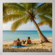 Um gráfico de alta qualidade de um casal relaxando em uma praia arenosa com uma vista no oceano tropical. Esse design é perfeito para uma ampla variedade de produtos para quem gosta de temas de viagem e verão.