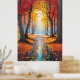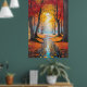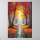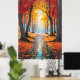 Essa poster encantadora captura a essência da queda em uma cena de tirar o fôlego que convida os espectadores em uma jornada serena. Uma rodovia sinuosa serpenteia através de uma floresta em chamas com as vibrantes matizes do outono. As árvores, vestidas em seus melhores vermelhos e amarelos, permanecem como guardiães silenciosos de cada lado do caminho, suas folhas formando uma cobertura colorida da cobertura. A luz solar filtra através da folhagem, lançando um brilho quente e ouro que melhora a beleza da cena. Espalhados ao longo da estrada, destaques de espiões azuis, lembrando o céu limpo do outono acima, acrescentando um contraste refrescante à paleta quente. Esta representação pitoresca de uma paisagem de queda é uma celebração do esplendor da natureza, acenando aos observadores para se perder em sua tranquilidade.