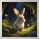 Poster Cena Mágica de Floresta com Coelho Bonito