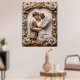 Um belo trabalho de arte decorativo com um romântico casal de casamento com asas angélicas, maravilhosamente enquadrado em um ornamentado de ouro floral com rosas e pérolas, evocando elegância, amor e encanto de eterno.