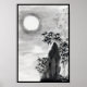 Póster Cenário clássico da lua noturna japonesa sumi-e