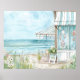 Poster Cenário costeiro de aquarelas em cores suaves