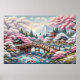 Poster Cenário japonês com Ponte, Koi e Sakura