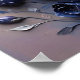 Esta poster branca apresenta lindas flores texturizadas levantadas em roxo, azul, e cinzas que se erguem de suas raízes. Terminado em um impressão de arte digital mestiço.