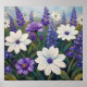Esta poster de capricho apresenta um campo alegre e pacífico de flores roxas brancas azuis. Terminado em um impressão de pintura a óleo.