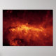 Nossa Via Látea é um lugar empoeirado. Tão empoeirado, de fato, que não podemos ver o centro da galáxia em luz visível. Mas quando o Telescópio Espacial Spitzer da NASA pôs os seus olhos infravermelhos no centro galáctico, ele capturou esta vista espetacular. Tomada apenas com uma das câmeras do Spitzer (em comprimento de onda de 8 mícrons), a imagem destaca as nuvens excepcionalmente brilhantes e poeirentas da região, acesas por jovens estrelas massivas. As estrelas individuais também podem ser vistas como pequenos pontos espalhados pelo pó. O mosaico superior mostra uma porção do centro galáctico que se estende por uma distância de 760 anos-luz. Obrigados à excelente resolução de Spitzer, as poeirentas características dentro do centro galáctico são vistas em detalhes inéditos. Quatro exemplos são mostrados nos insetos ampliados na parte inferior. A caixa mais à esquerda mostra um par de regiões formadoras de estrelas que se assemelham a olhos cósmicos tipo coruja. À esquerda dos "olhos", podem ser vistas faixas escuras de poeira. Esse objeto deve estar localizado em um braço espiral entre a Terra e o centro galáctico, em contraste com os exemplos a seguir, que estão todos localizados no centro galáctico. A próxima entrada à direita inclui as extremamente luminosas estrelas "Quintuplet", um conjunto de cinco estrelas massivas que se acredita terem se enterrado em casulos de poeira. Logo abaixo e à direita do Quintuplet está a nebulosa "Pistol", uma bolha de material ejetado da estrela central e massiva do Pistol. Os pilares do dedo à esquerda são parte de uma estrutura conhecida como "Doença". São semelhantes em tamanho e forma às da famosa imagem da Nebulosa da Águia tirada pelo Telescópio Espacial Hubble da NASA. Pilares como estes são esculpidos de densas nuvens de poeira por radiação e ventos de estrelas quentes. Os pilares da Doença deveriam ter sido formados por um aglomerado de estrelas quentes localizadas à sua direita, mas não prontamente visíveis aqui. O terceiro inset destaca um sistema de estruturas longas e rígidas que são vistas pela primeira vez perto da base de uma região conhecida como "Filamentos Archados". Esses longos filamentos têm cerca de 10 anos-luz e menos de 1 ano-luz. As regiões brilhantes à direita que formam estrelas são algumas das mais brilhantes do céu infravermelho. A última entrada à direita mostra o centro de nossa galáxia, que é o ponto mais brilhante em todo o mosaico. O brilho é resultado do aquecimento da poeira por um aglomerado compacto de estrelas quentes. O ponto brilhante também marca a localização de um buraco negro supermassivo, ao redor do qual se pode ver um anel rotativo de gás e poeira conhecido como disco circunnuclear. Essa imagem foi tirada com a IRAC (Infrared Array Camera, câmera de raios infravermelhos) da Spitzer, usando seu detector de 8 mícrons. Mostra emissões de moléculas aquecidas em nuvens de poeira chamadas hidrocarbonetos aromáticos policíclicos.