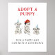 Sinal bonito e divertido para a festa de aniversário do tema do bombeiro do seu filho! É uma placa de poster do centro de adoção para uma atividade de aniversário para adotar animais recheados. Tenha uma variedade de animais recheados como favoritos para festas para as crianças irem para casa e "adotarem um animal de estimação." Apresenta a ilustração de cães Dalmáticos com capacete de bombeiro vermelho e chapéus de festa azuis. O texto diz "adote um cachorrinho".