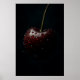 Poster Cereja Vermelha Escura com Gotas de Dew em Preto