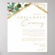 Esta poster de cerimônia branca e verde de Natal moderna, desplugada, é perfeita para o seu simples casamento no inverno. Concebidos com folha de ouro falso geométrica e uma aquarela botânica minimalista com toques de eucalipto verde e de winterberry vermelha. Tudo num fundo branco clássico. Estes elementos dão-lhe uma sensação moderna, mas elegante, de completar a aparência que você quer! Você pode personalizar com suas próprias fotos ou mantê-las como estão. Não se esqueça de olhar o resto da coleção para completar o tema do casamento!