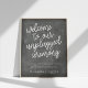 Planejar uma cerimônia desconectada, mas não sei que texto usar para que seus convidados saibam guardar seus telefones? Este poster de chic cuida disso em seu estilo. O design de estilo Chalkboard apresenta "bem-vindo à nossa cerimônia desconectada" em tipografia de script de estilo manuscrito com seus nomes e mensagem personalizada abaixo. Mostrado com "por favor guarde seus telefones e câmeras até depois da cerimônia."