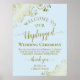 Este belo sinal "Desconectado" que serve como uma saudação agradável para seus convidados de casamento, ao mesmo tempo em que os solicita que desliguem seus telefones, câmeras e dispositivos, garantindo uma cerimônia contínua e ininterrupta. O cartaz apresenta um elegante design azul-pó pálido e dourado com caligrafia cursiva graciosa e caramujos de folhas falsas e ouros enfeitando as esquinas. A mensagem diz: Bem-vindo à nossa cerimônia de casamento desplugada. Por favor, desligue seus telefones, câmeras e dispositivos para que todos possamos desfrutar da cerimônia sem interrupções.