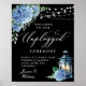 Para mais personalização, clique em "Personalizar este modelo" e, em seguida, em "Editar usando a Ferramenta Design". Na moda fácil de usar modelos de casamento, mais itens disponíveis na loja (convites, rsvp, cartas de agradecimento, papelaria e decoração). Se precisar de ajuda ou itens correspondentes, entre em contato comigo. Poster da Cerimônia de Casamento Unplugado de Hydrangea Lanterna Azul