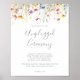 Esta poster de cerimônia desplugada de flor silvestre colorida do prado é perfeita para um casamento ou chá de panela moderno. O design apresenta flores verdes, cor-de-rosa, pinceladas, amarelas, púrpuras, multicoloridas do campo.
