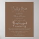 Este poster de cerimônia desplugada do casamento marrom minimalista é perfeito para um casamento rústico. O design apresenta uma fonte elegante de caligrafia em fundo marrom para embelezar seu evento.