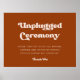 Sinal de casamento de cerimônia desplugada: uma simples poster para gentilmente pedir aos seus hóspedes para não tirarem fotos durante a cerimônia. Um tema retro-chic: adote este design de vintagem e na moda para tipografia para sua papelaria de Casamento, com um tema de cor laranja queimada. Fácil de misturar e combinar com nosso material de papelaria semelhante, disponível em açúcar cor-de-pêssego, terracota e castanho. Cores de texto e planos de fundo totalmente personalizáveis.
