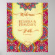 Cerise mandala rangoli conjunto haldi personalizado sinal de boas-vindas modelo. Cores vibrantes para se adequar às celebrações do pré-casamento.