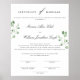 Projetado para a nossa coleção de casamento "Botanical Greenery", este certificado de Casamento personalizável apresenta folhas verdes delicadas com um texto elegante para caligrafia. Itens correspondentes disponíveis.