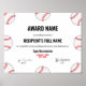 Poster Certificado de Prêmio de Desempenho do Baseball -