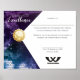 Certificado universal de excelência ou apreciação com sequin faux ou pixéis faux sparkle em blues e purpes com um medalhão de estrelas e o seu texto e logótipo personalizados.