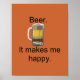 Esta design apresenta uma imagem de uma caneca de cerveja alta e espumosa, e lê, "Cerveja. Isso me faz feliz."