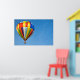 Balão de ar quente colorido no céu azul.