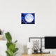 Esta poster tem uma imagem de um céu azul, nuvens e lua de cheio, e uma citação inspiradora de uma pessoa desconhecida: A lua guiará você durante a noite com seu brilho, mas ela sempre irá se drenar na escuridão, para ser vista.