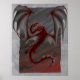 Um dragão vermelho voando contra o pano de fundo de um céu sinistro.