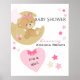 Uma menina bonita chá com um adorável desenho animado de ursinho de pelúcia sentado na lua com um coração cor-de-rosa e um arco e estrelas na cor escura e rosa claro e creme. Grelha e chá de fraldas adorável. Fácil de personalizar substituindo o texto pelo seu.