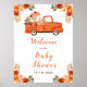 Cartaz rústico de chá de bebê com um caminhão de abóbora, abóboras laranja e bege e arranjos florais. Perfeito para um chá de bebê de outono. As palavras podem ser alteradas para atender às suas próprias necessidades ou requisitos