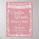 Dê as boas-vindas aos seus convidados com estilo com este deslumbrante cartão de boas-vindas para chá de bebê inspirado no México! Apresenta um elegante texto "Cielito Lindo", uma faixa de papel picado branco, uma borda floral de arte popular intrincada e dois passarinhos na parte inferior em um fundo suave de cor Rosa Bege. Uma bela peça de destaque para a entrada da sua festa, mesa de sobremesas ou cenário de fotos.