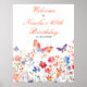 Linda placa de boas-vindas de aniversário com flores coloridas em rosa, roxo e laranja, borboletas e folhagens. Perfeito para um chá de noiva de primavera ou verão. As palavras podem ser alteradas para atender aos seus próprios detalhes ou requisitos.
