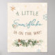 poster de "Um Pequeno Floco de Neve Está a Caminho" em azul claro, marrom e verde para decorar um chá de fraldas de inverno ou borrifar. Designs correspondentes disponíveis no meu compro.