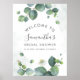 Sinal de chá de panela moderno para um chá de panela temático botânico moderno e eventos de aniversário. Apresenta folhagens de eucalipto com fundo em aquarela cor de rosa. Altere facilmente os detalhes clicando no botão "Personalizar" acima.