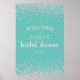 Elegante sinal de boas-vindas de chá de noiva azul turquesa com confetes de diamante prateado brilhante. Entre em contato conosco para obter ajuda com personalização ou produtos correspondentes.