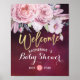 Póster Chá de fraldas Bem-Vindo Penas Florais Vermelho Bo