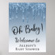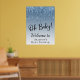 Um elegante poster de boas-vindas para o chá do seu bebê que apresenta brilho azul falho pingando do topo e "Oh Baby!" em um roteiro na moda contra um fundo azul ombre. Você pode personalizar facilmente o nome da futura mãe.