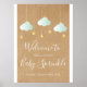 Perfeito para acolher amigos e familiares em um chá especial de bebê, chá ou casal, neutro em relação ao gênero. Apresentando lindas nuvens verdes de menta e estrelas ouros em cordas, em um fundo kraft rústico, este bonito sinal de boas-vindas é perfeito para todos os pequenos que estão a caminho. Projetado por Thisnotme©