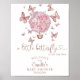 Poster Chá de fraldas das Borboletas Florais Rosa