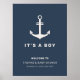 É um rapaz!, tema do chá de fraldas náutico, comemorar o próximo chá de fraldas com a nossa âncora náutica minimalista beige em cor azul marinho. Você pode personalizar seu próprio texto e cor através de "personalizar este design".