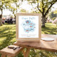 Sinal de poster de chá de fraldas de baleia para a rifa de fralda. Design de aquarela em azul e branco com animais marinhos. Enquadre-o para colocá-lo na mesa da mesa ou pendurá-lo em uma parede.